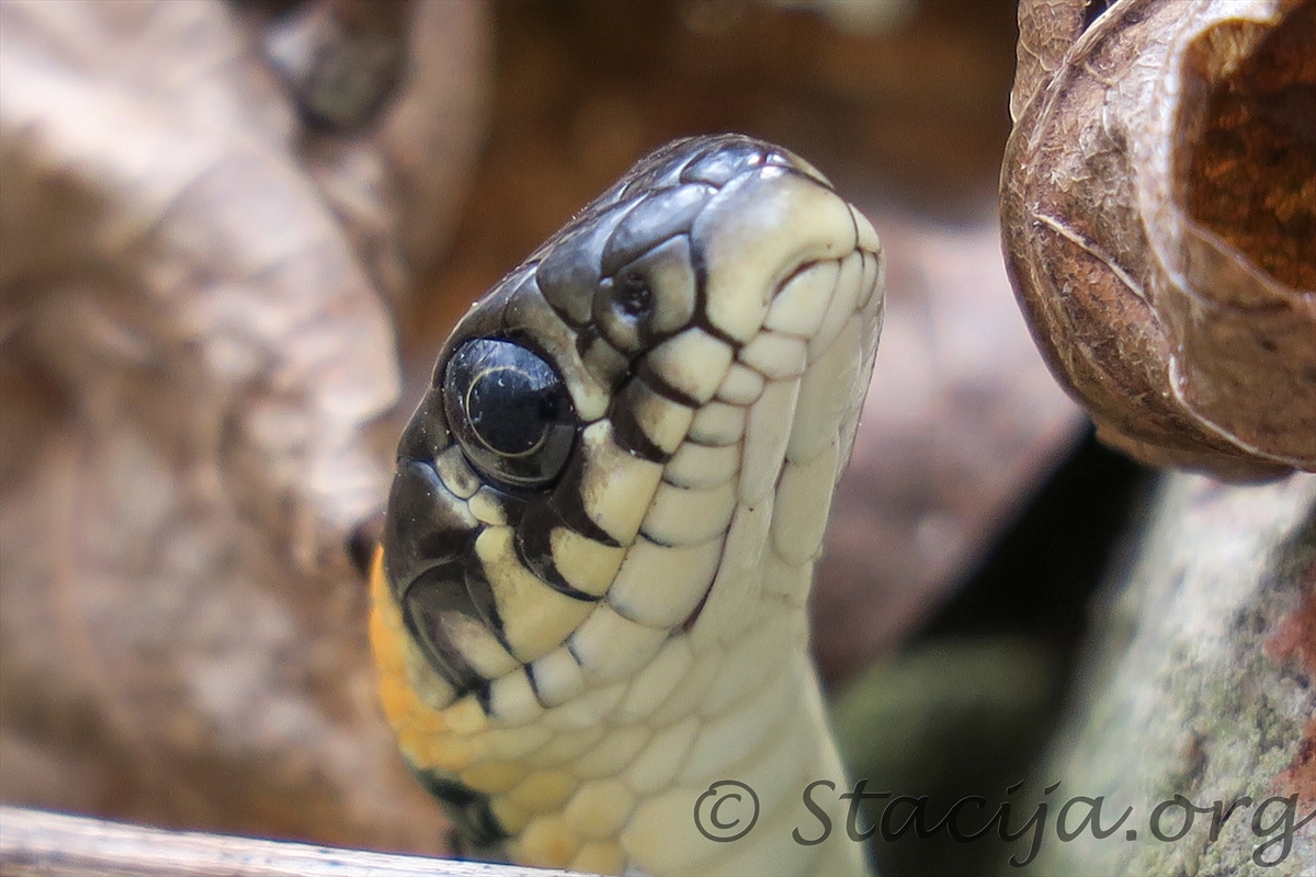 Visbeidzot nogāju no takas apskatīt kādu vecu pagrabu vai noliktavu paslēptu pamatīgā uzkalniņā un metru no sevis pamanīju čūsku. Ļoti mazkustīga un tieva. Netrenkājām un ļāvām lai atpūšas. Parasti čūskas no manis mūk un tikai pēc tam tās ieraugu.